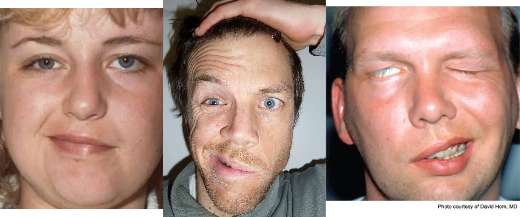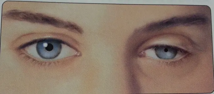 - Divergent/Exotropia Ptosis: 3rd nerve palsy