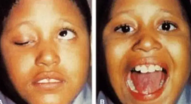 This is a form of congenital ptosis characterized by synkinesis: an abnormal neurological connection between the Trigeminal Nerve (CN V), specifically branches innervating the pterygoid muscles (jaw movement), and the branch of the Oculomotor Nerve (CN III) innervating the Levator Palpebrae Superioris muscle.