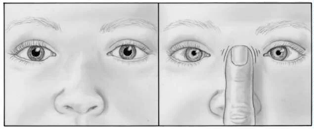 Move your finger towards the pt’s nose