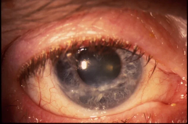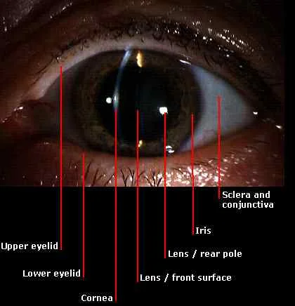 - Inspects external ocular (eye) structures (lids, conjunctiva, iris, cornea, pupils)