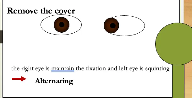 - Steps: - Ex:Right eso -VA -cover test: Ex: Right Conv squint in 1ry position