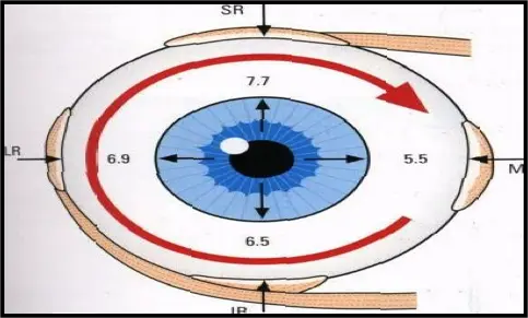 - 1 )Recession: incision in the conjunctiva to expose the muscle, muscle is then disinserted on the globe.