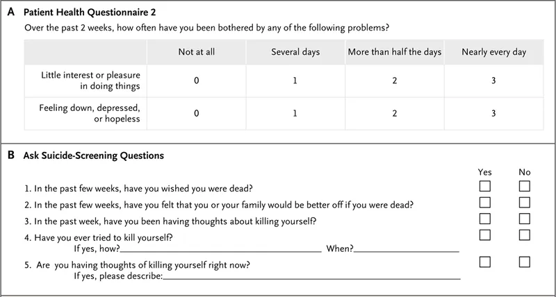 - Screening for depression and suicidal thinking and behavior is important in the primary care setting.
