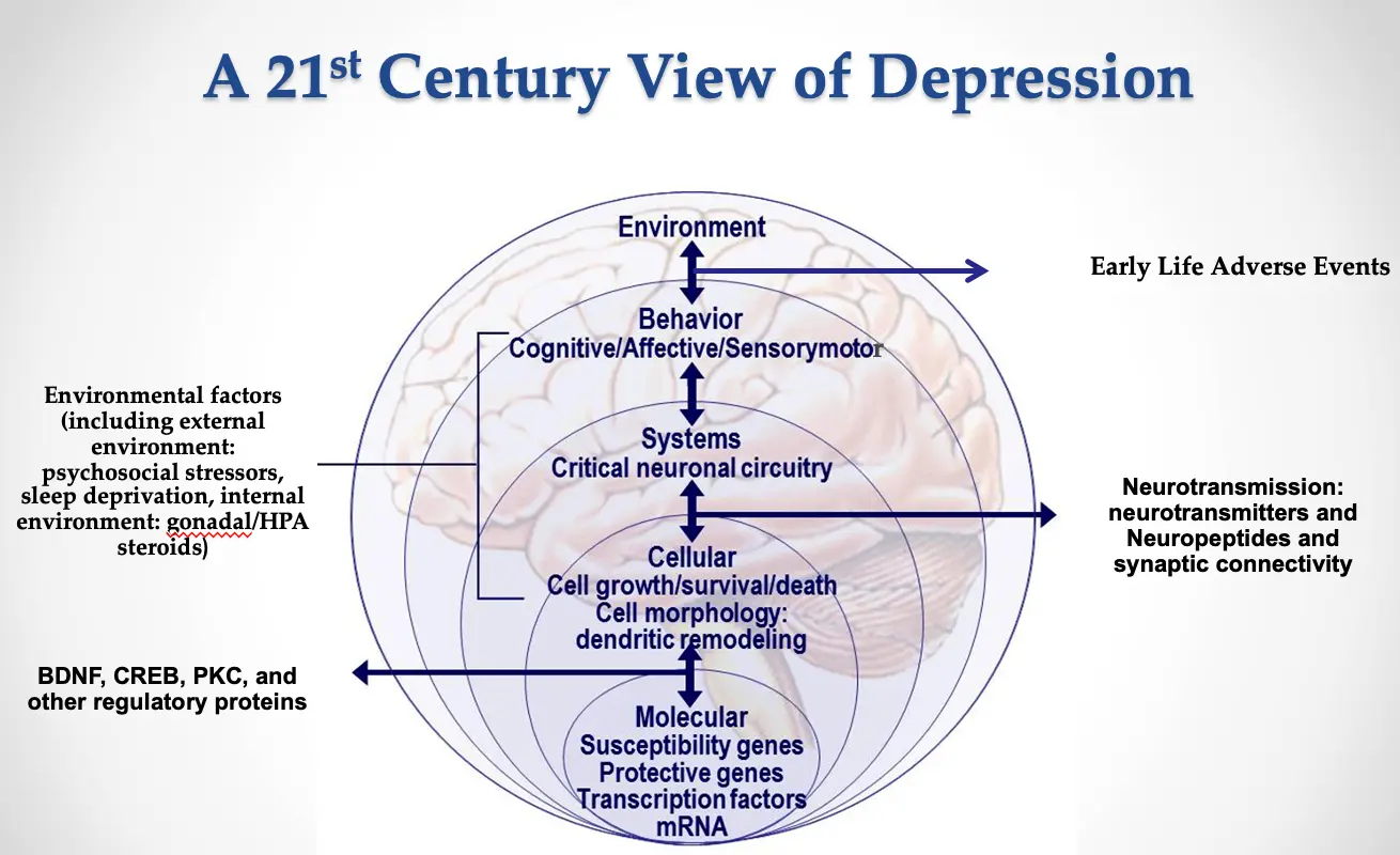 From the neurobiological perspective, a new clinical outlook of depression encompasses the understanding of molecular, cellular, chemical, behavioral and environmental factors of depression.