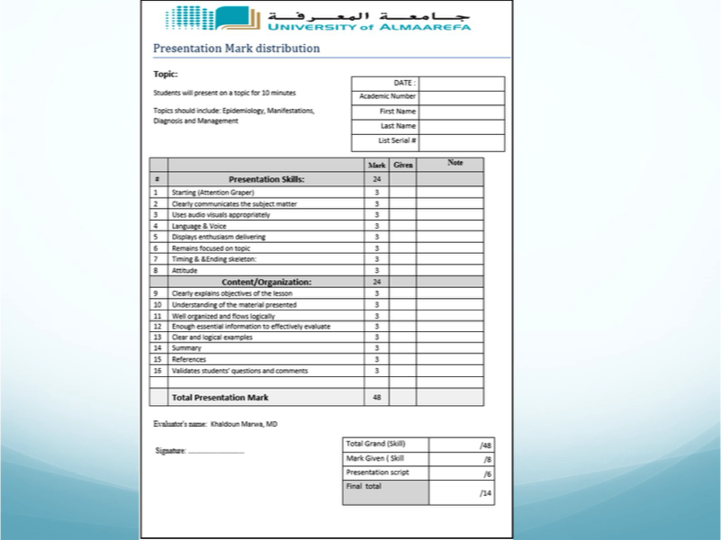 - Topics should include: Epidemiology, Manifestations, Diagnosis and Management