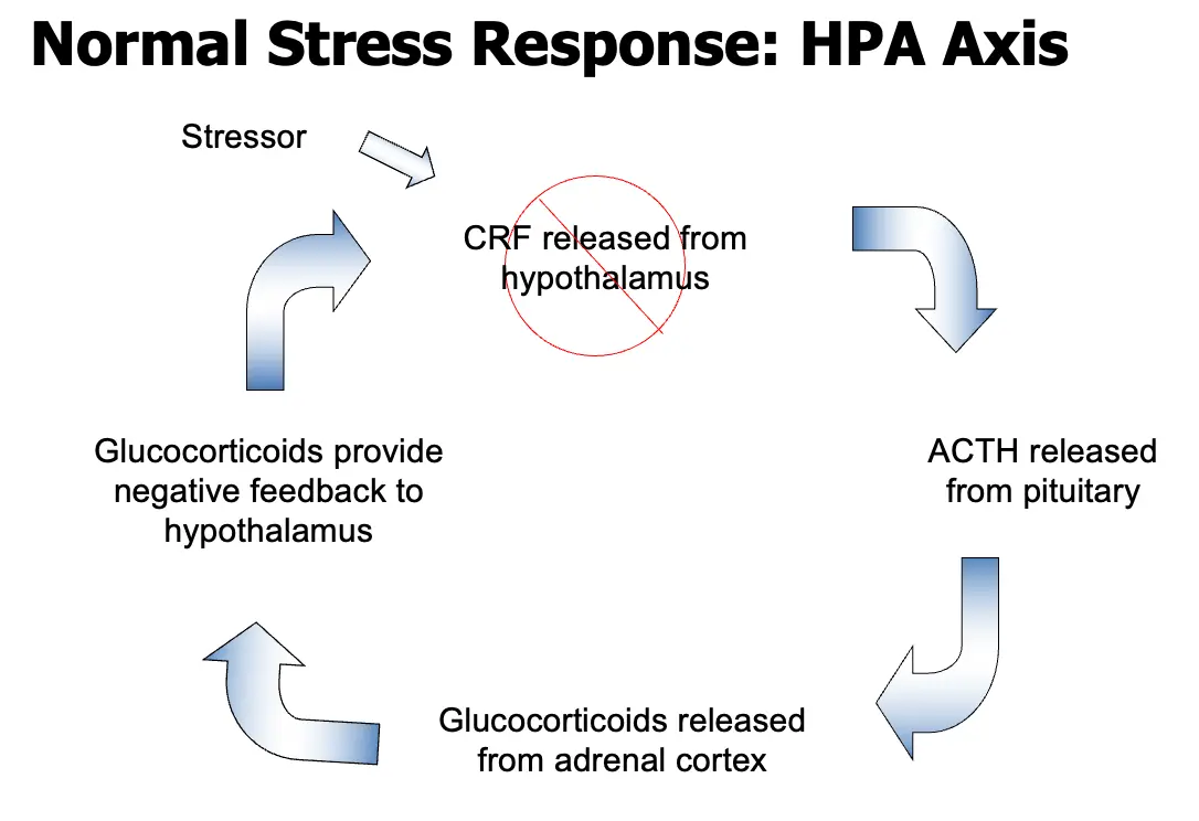 - Gluco-corticoids provide negative feedback to hypothalamus