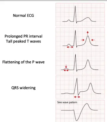 - Mild: S K+ = 5.5-6.5 mEq/L