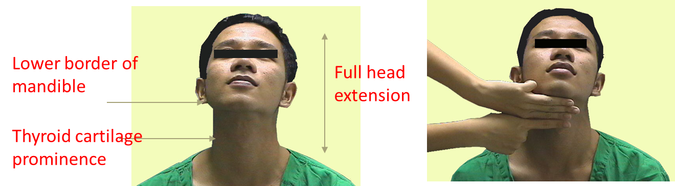 - Ensure height of tube from incisor of teeth to ear? (21 female, male) - should reach t4 best