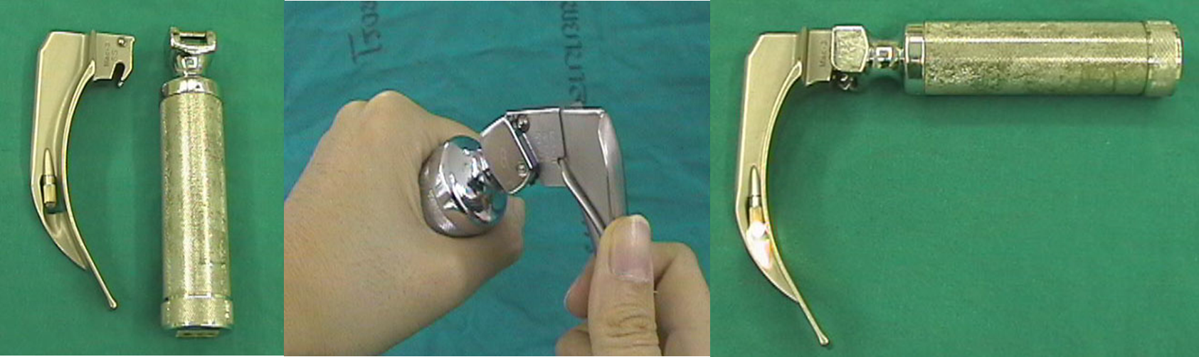 - Check the laryngoscope and blade for proper fit, and make sure that the light works
