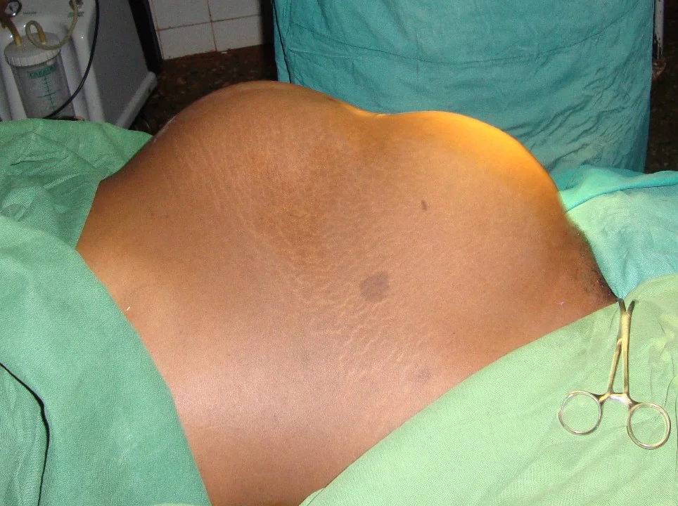 Retraction ring (bandlβs ring) is seen and felt between upper & lower segment (site of uterine rupture).