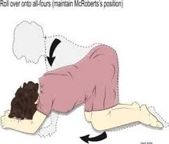 - Roll over onto all-fours (maintain McRoberts’s position)