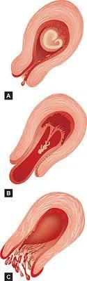 A. Necrotic changes in the tissue adjacent to the bleeding. B. Detachment of the conceptus. C. The above will stimulate uterine contractions resulting In expulsion.