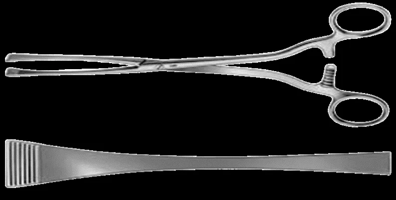 | Green Armytage forceps | Control bleeding from uterine edges; assist suturing in C-section | — | — | ![]() |