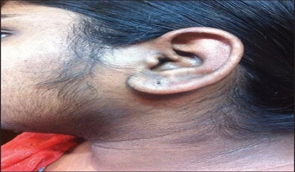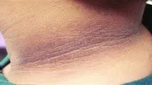 • Acanthosis nigricans (areas of increased velvety skin pigmentation occur in the axillae and other flexures).