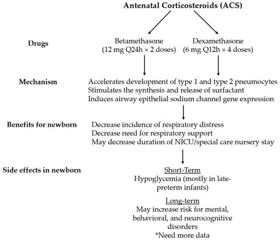Side effects in newborn shorterm: Hypoglycemia in late-preterm infants Longterm: May increase risk for mental behavioral and neurocognitive disorder