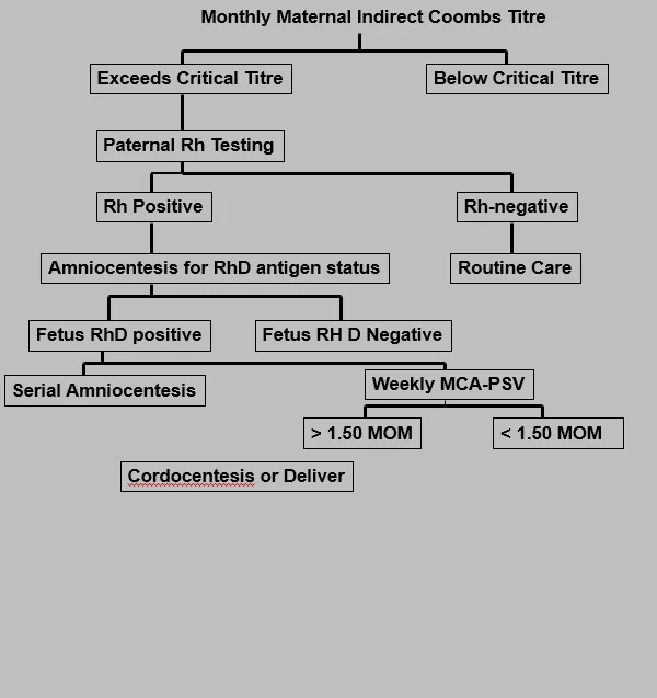 • When the titer rises to ≥ 1:16, a detailed assessment is warranted. - significant - maternal RH testing if exceeds - if parental negative routine, positive Amniocentesis for RHD antigen