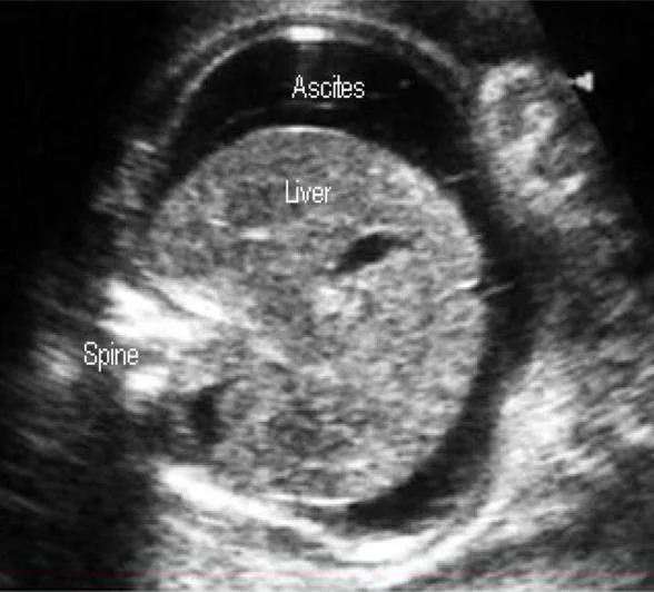 • Ultrasonographic Parameters To determine Fetal Anemia: * Placental Thickness. * Umbilical Vein Diameter (increased). * Hepatic Size. * Splenic Size. * Polyhydramnios. * Fetal Hydrops (e.g., Ascites, Pleural Effusions, Skin Edema). * Blood velocity (increased).