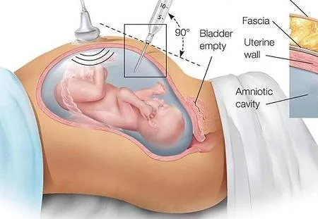 • After staining with hematoxylin and eosin, the fetal cells can readily be distinguished from the empty maternal cells.