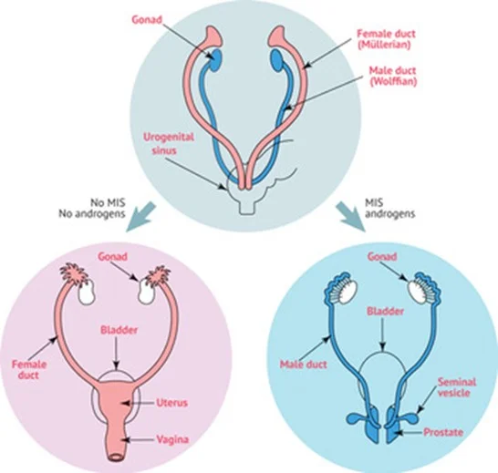 - SRY gene on the Y chromosome ➡️ testes.