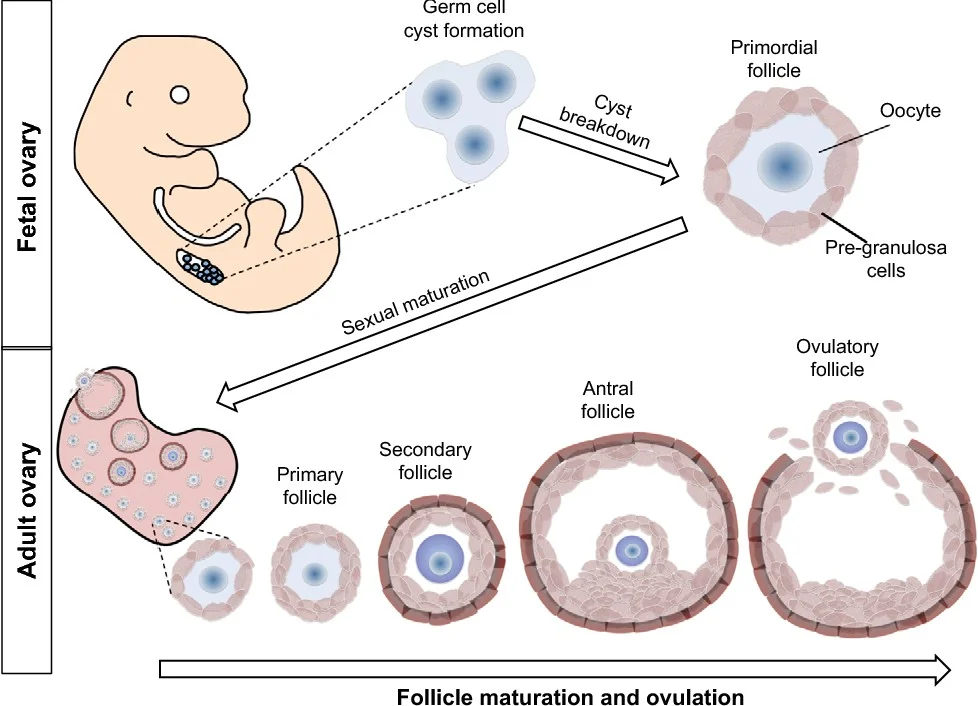 The maximum number of primordial follicles is reached at 20 weeks’ gestation when there are six to seven million primordial follicles present.