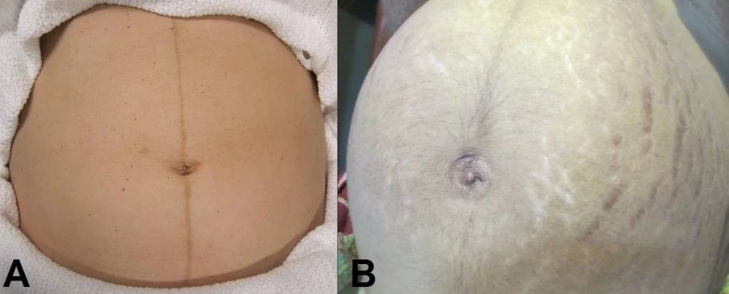 - Breast: Enlarged in size, 2ry areola, Montgomery’s gland, Redness, Vascular engorgement, Colostrum, Cracked or fissure nipple.