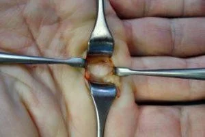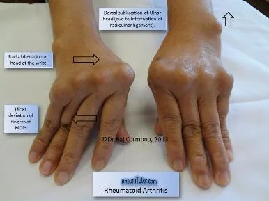 Radial deviation of hand at the wrist Ulnar deviation of fingers MCPJ Dorsal subluxation of Ulnar head (due to disruption of radioulnar ligaments)