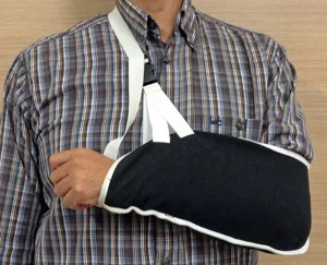 - Or Shoulder sling holding the elbow to overcome gravity