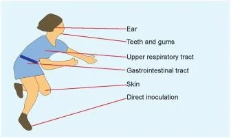 - Direct-inoculation: Penetrating injuries or surgical contamination