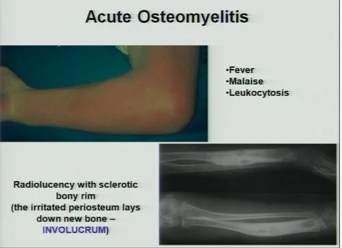 - Sclerosis. Bone destruction, cavities, new bone formation, sequestrum