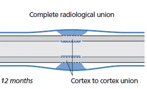 - Remodelling and the gradual replacement of bridging bone by medullary callus