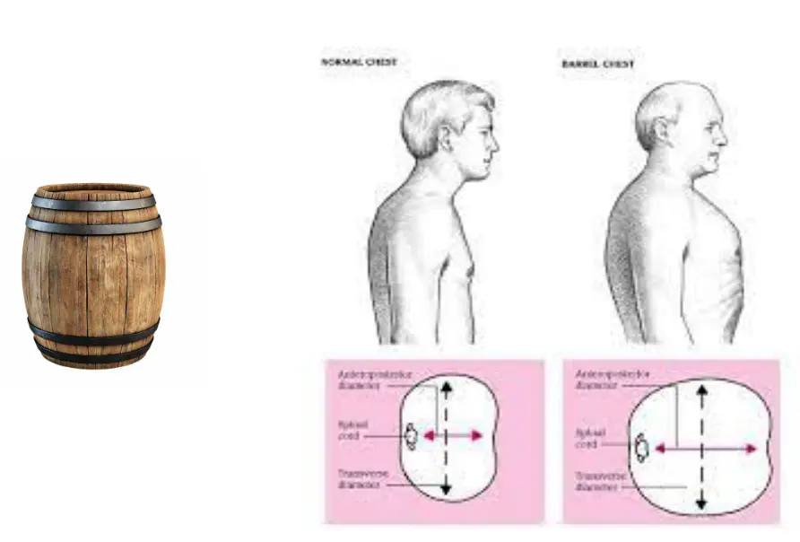 a) Hyperinflation: During expiration, lungs don’t collapse fully, so air gets trapped inside (so total lung capacity TLC is increased)