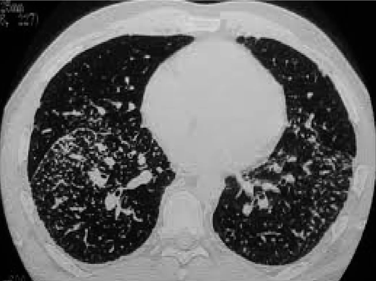 | STAGE 2 | Lymphadenopathy + pulmonary infiltration (fig. B) | 25%–30% |