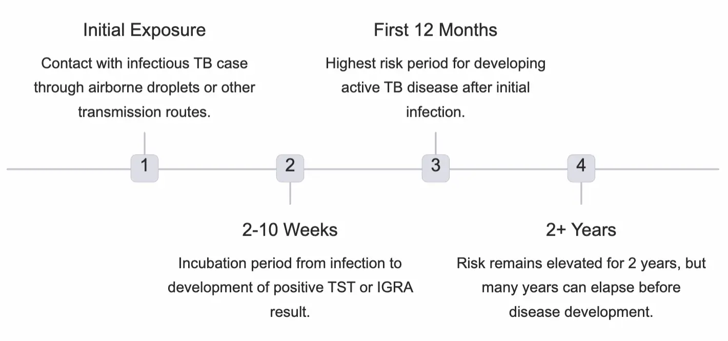 - Incubation Period (2–10 Weeks): Time from exposure to development of a positive TST or IGRA result.