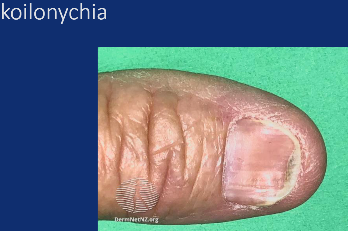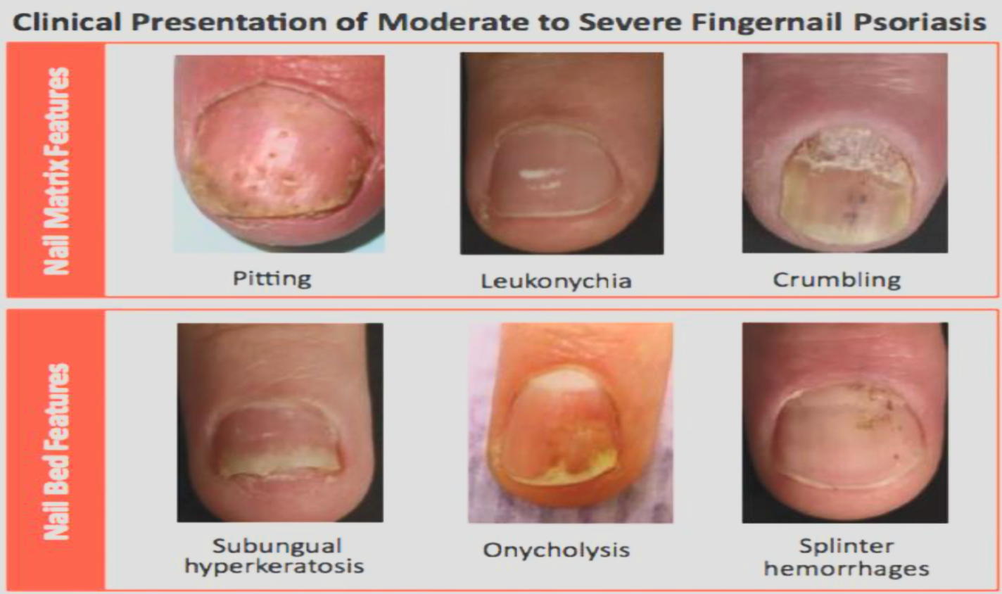 4- Nail changes may indicate dermatological or systemic diseases Dermatological changes might be due nail infection as onycholysis or a part of generalized dermatological diseases as psoriasis or lichen planus