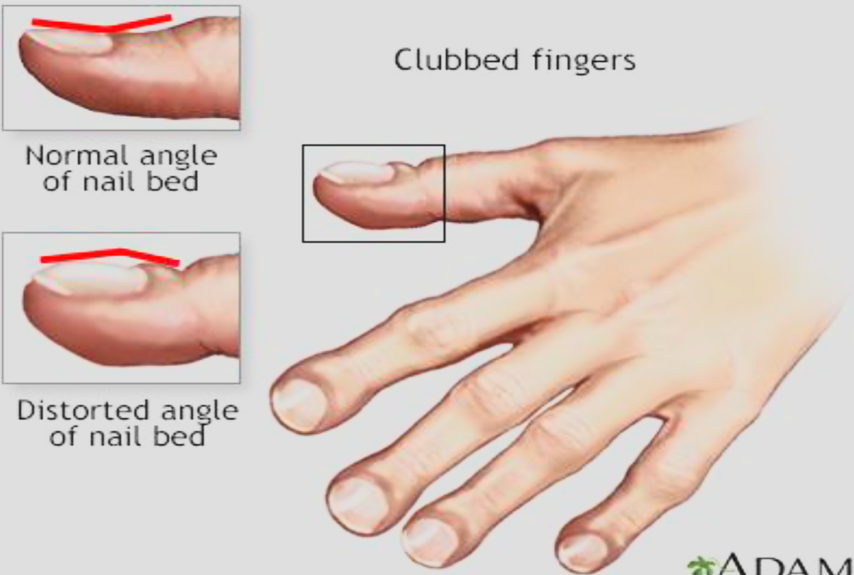 5- Clubbing fingers β chronic diseases (pulmonary , hepatic ,cardiac )