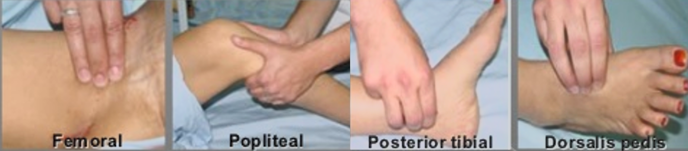 - lower limb; arteries:ex. Pulse grading rated 0-4 - absent, weak, diminished, strong, full & bounding