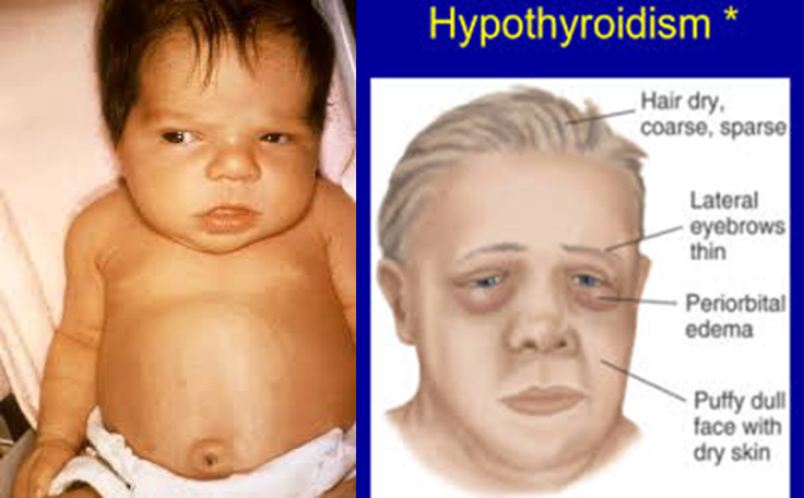 - Congenital hypothyroidism (in neonates) = Cretinism