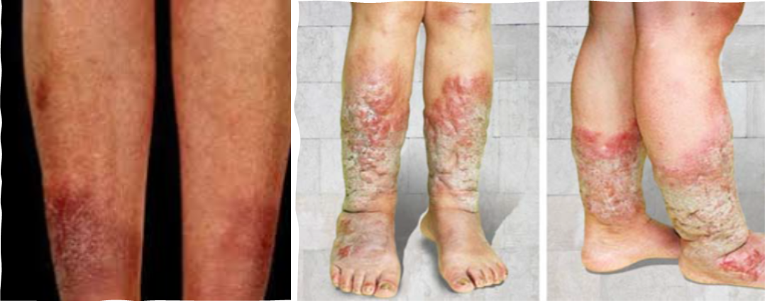 - Extremity- proximal muscle weakness, pretibial myxedema (thyroid dermopathy) – localized lesions of the skin from the deposition of hyaluronic acid