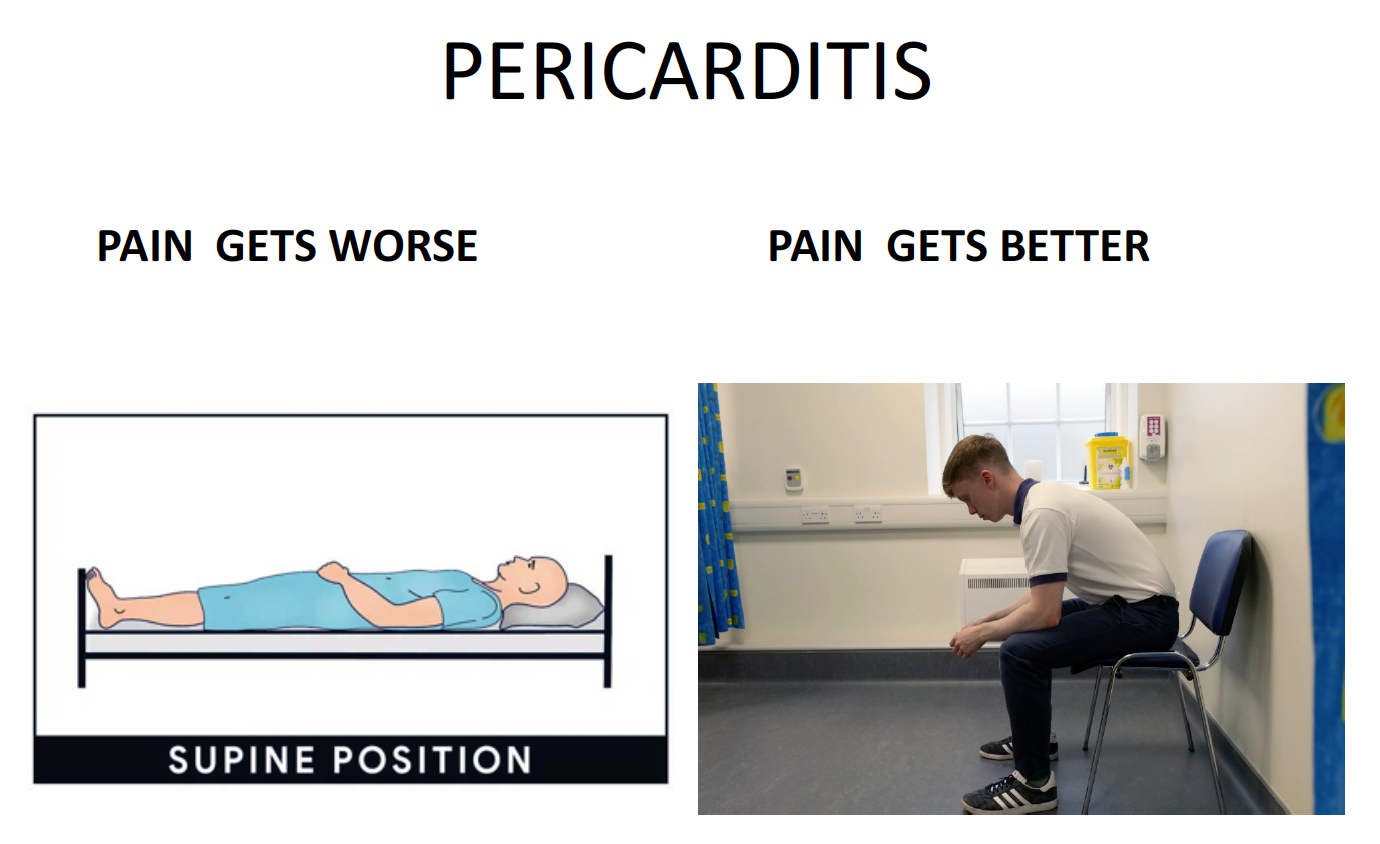 Key etiological diagnosis of chest pain - Occurs in coronary artery disease (angina, MI) and in pericarditis. Does not occur in heart failure & endocarditis.