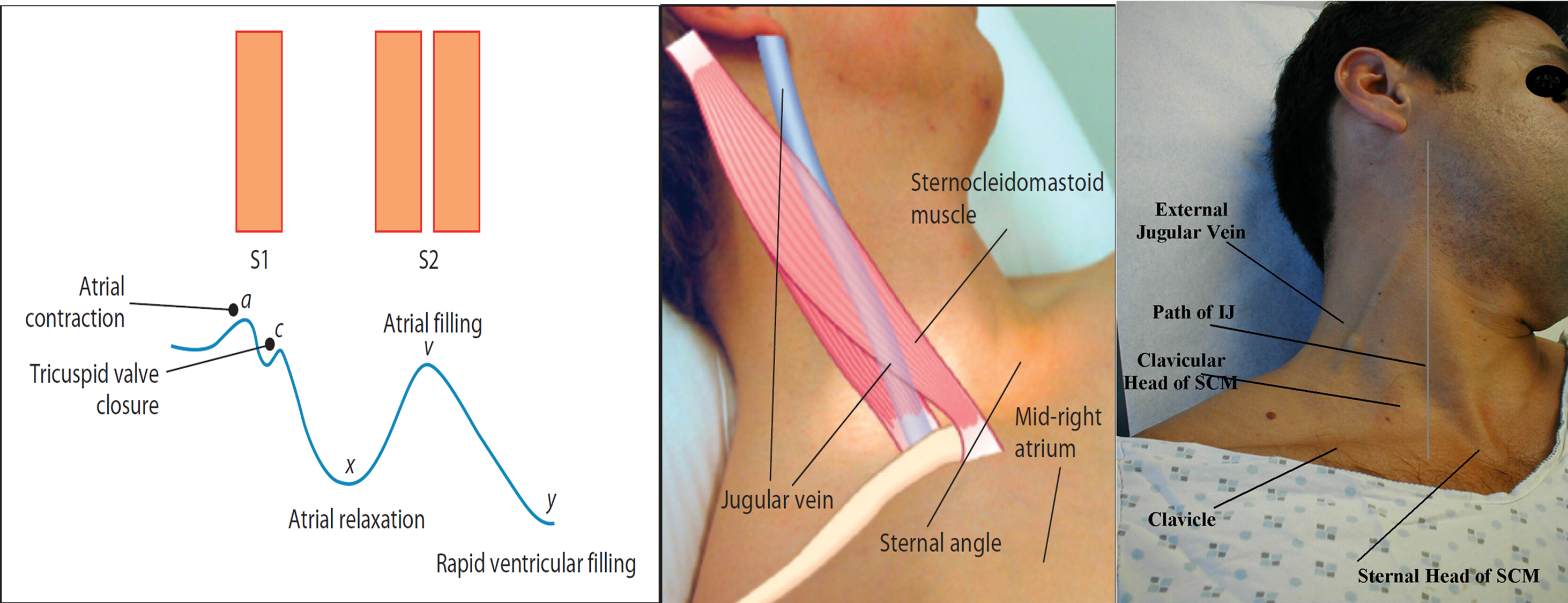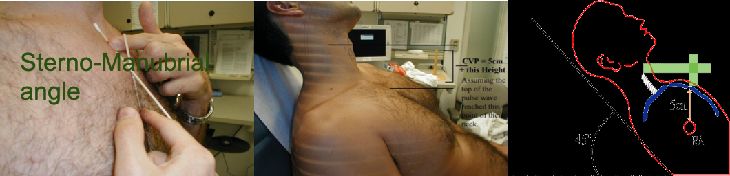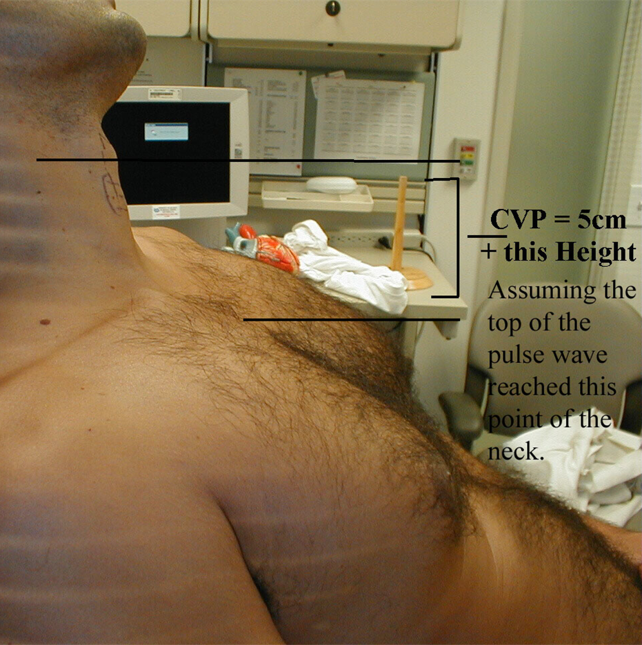JVP = 5cm (height sternal manubrium jxn is above RA) + vertical distance from sternal manubrium jxn to top of pulse wave