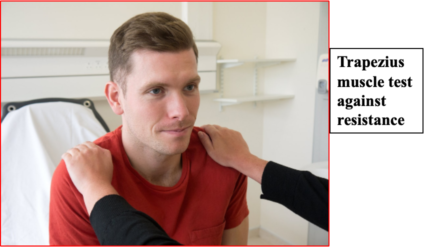accessory nerve gives motor supply to the sternocleidomastoid and trapezius muscles. To test it, ask the patient to shrug their shoulders and turn their head against resistance.