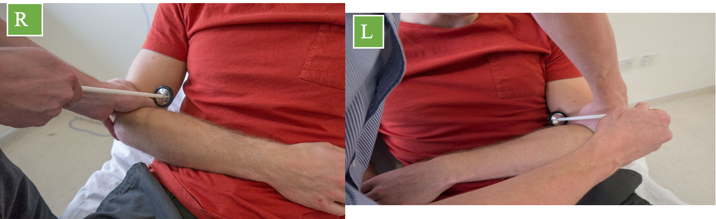 - Biceps Reflex The biceps reflex is tested by supporting the patient’s arm, with it flexed at roughly 60 degrees, placing your thumb over the biceps tendon and hitting your thumb with the tendon hammer. It is vital to get your patient to relax as much as possible and for you to take the entire weight of their arm. Root value C5-C6