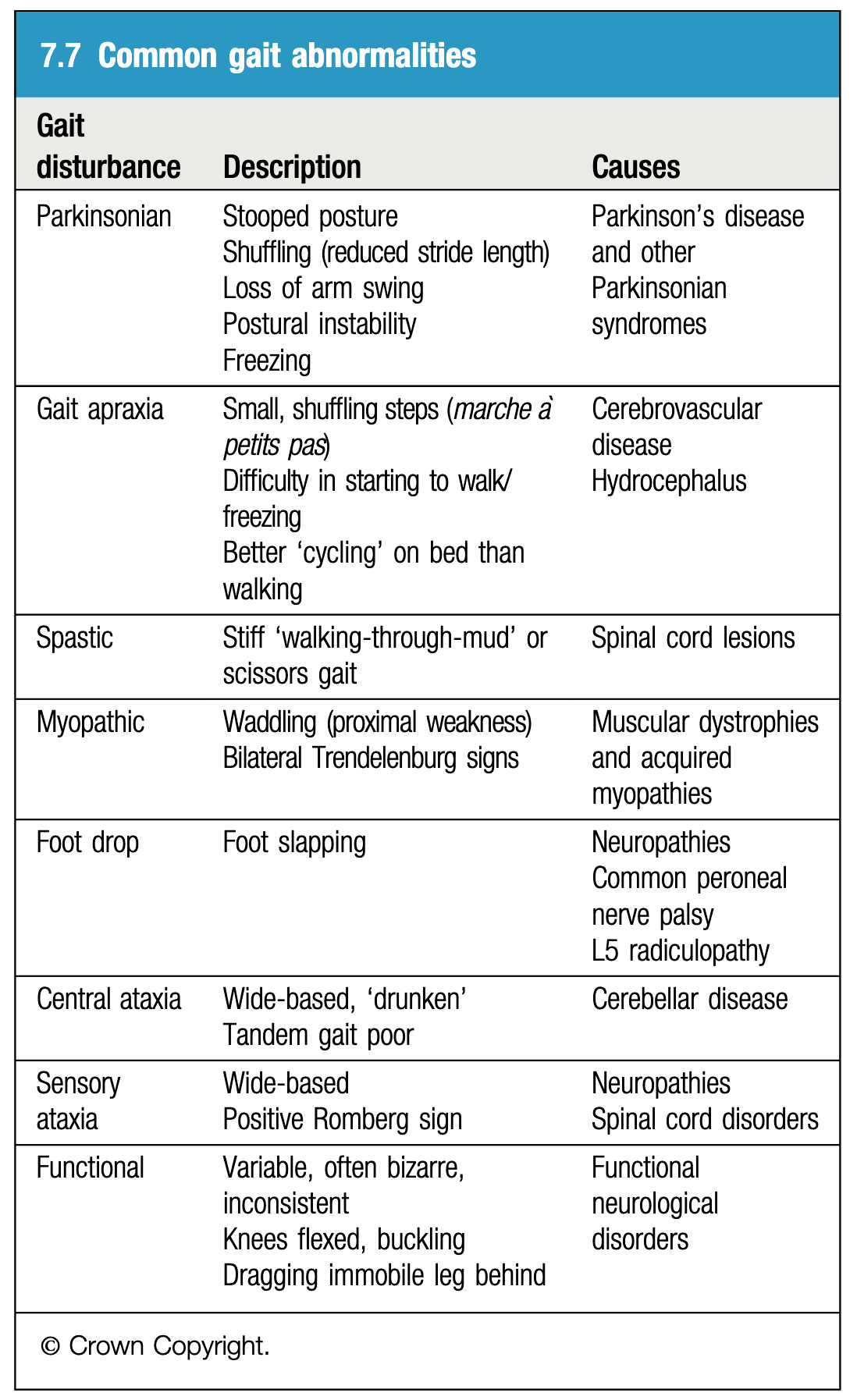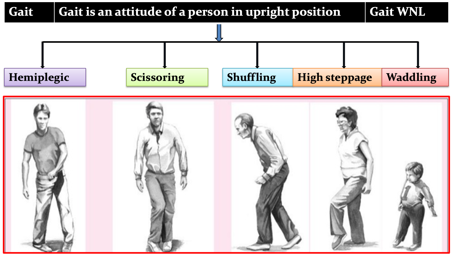 Types includes Hemiplegic, Scissoring, Shuffling, High Steppage, and Waddling