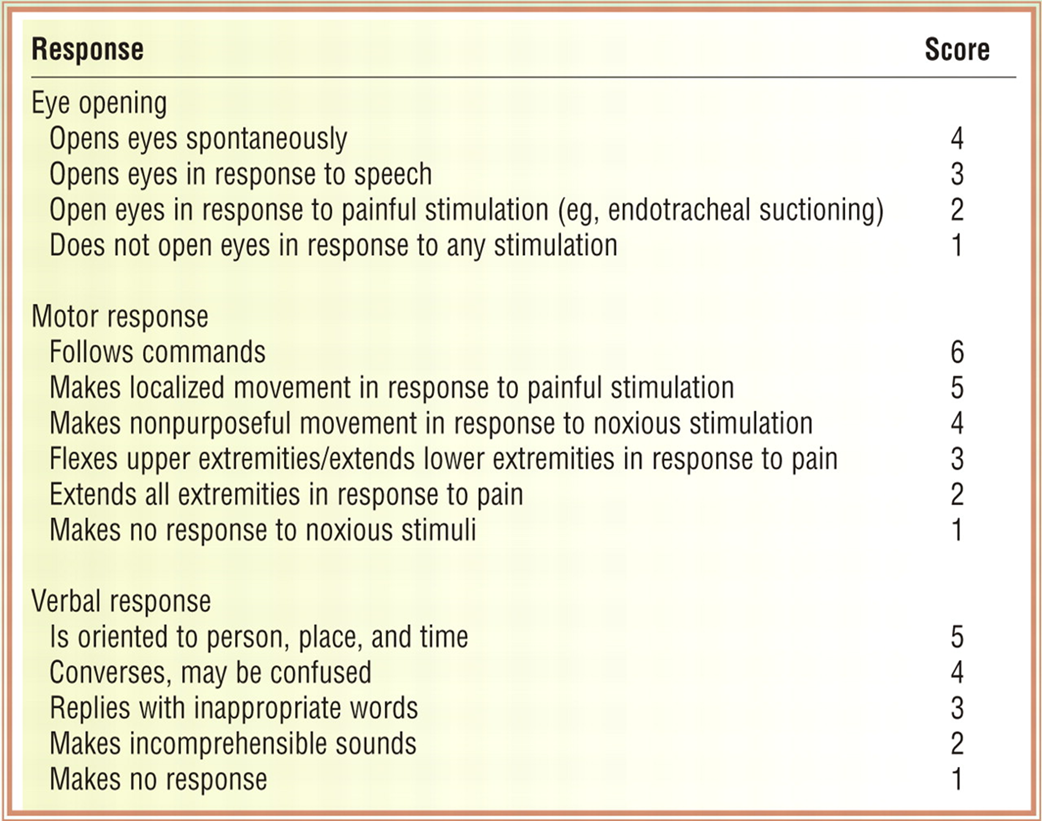 - 3 totally comatose patient - lowest worst possible score