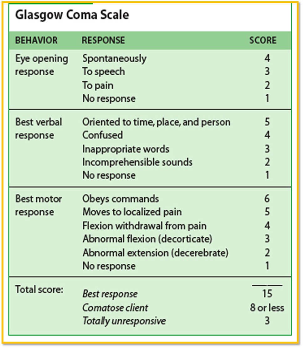 - Score <8 Indicates coma