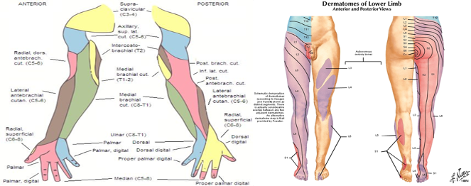 Often used interchangeably by the patient for weakness Paresthesias = pins and needles Dysthesias=unpleasant or unnatural sensation Anesthesia=no feeling Anatomical localization Diagrams of radicular and cutaneous innvervation