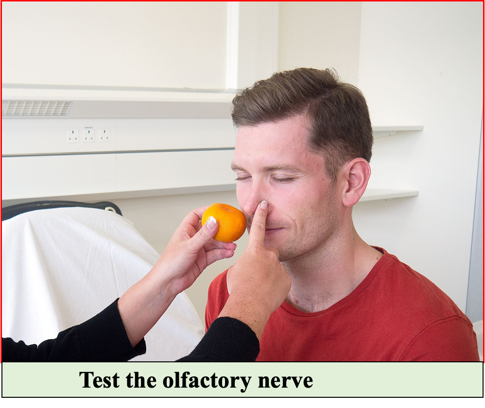 simply tested by offering patient familiar smell and asking patient to identify, for example orange/lemon peel, coffee, or vinegar.