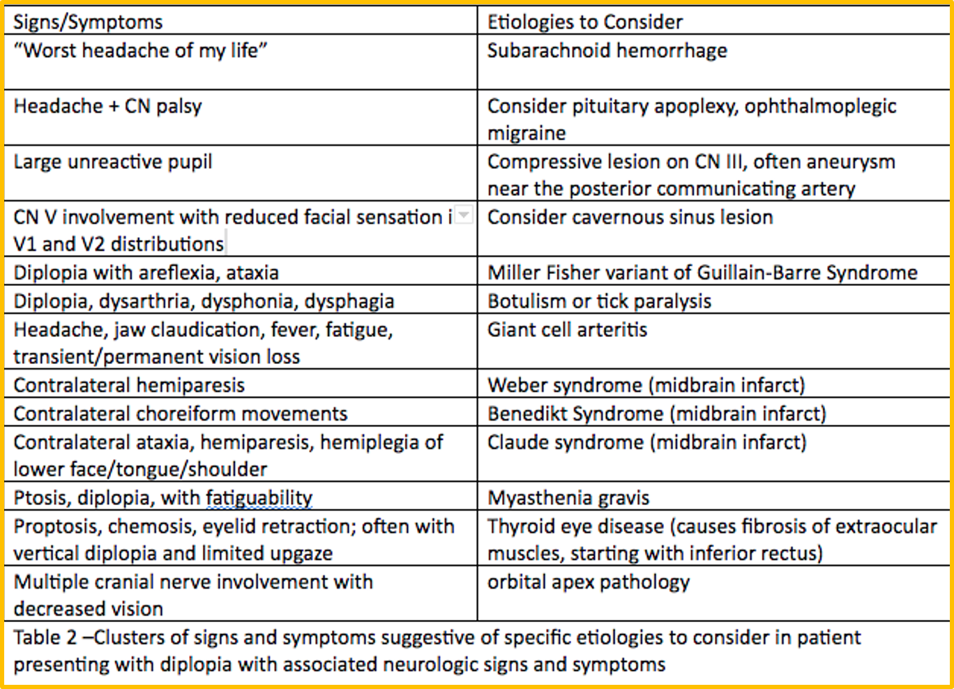 Other neurological deficits - Botulism - Wernicke encephalopathy - Miller Fischer syndrome - Myasthenia gravis - Brain stem stroke - Multiple sclerosis - Basilar meningitis