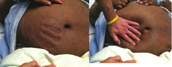 Ask if they have any pain or tenderness: be particularly careful if they have. Look at the patient’s face whilst examining for any tenderness or pain. Palpate lightly with fingertips ± ulnar border of index finger and then more deeply. Palpate all areas of the abdomen.