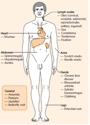 Examining the patient with lymphadenopathy and/ or splenomegaly.